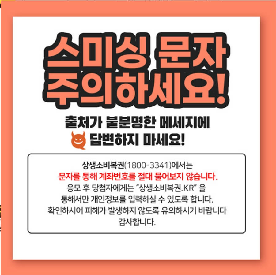 - 스미싱 문자에 주의하세요.