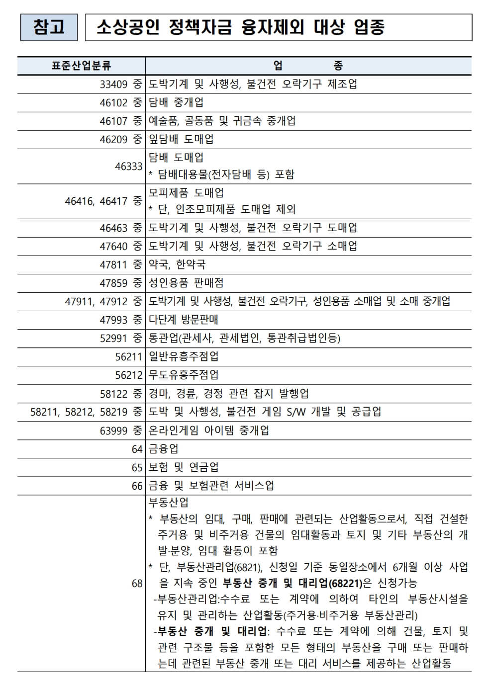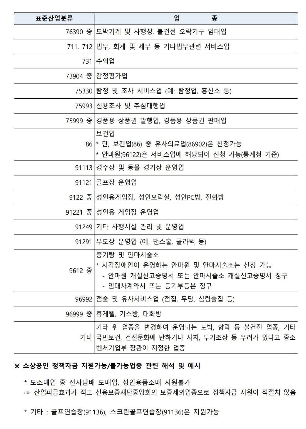 지원 제외 업종